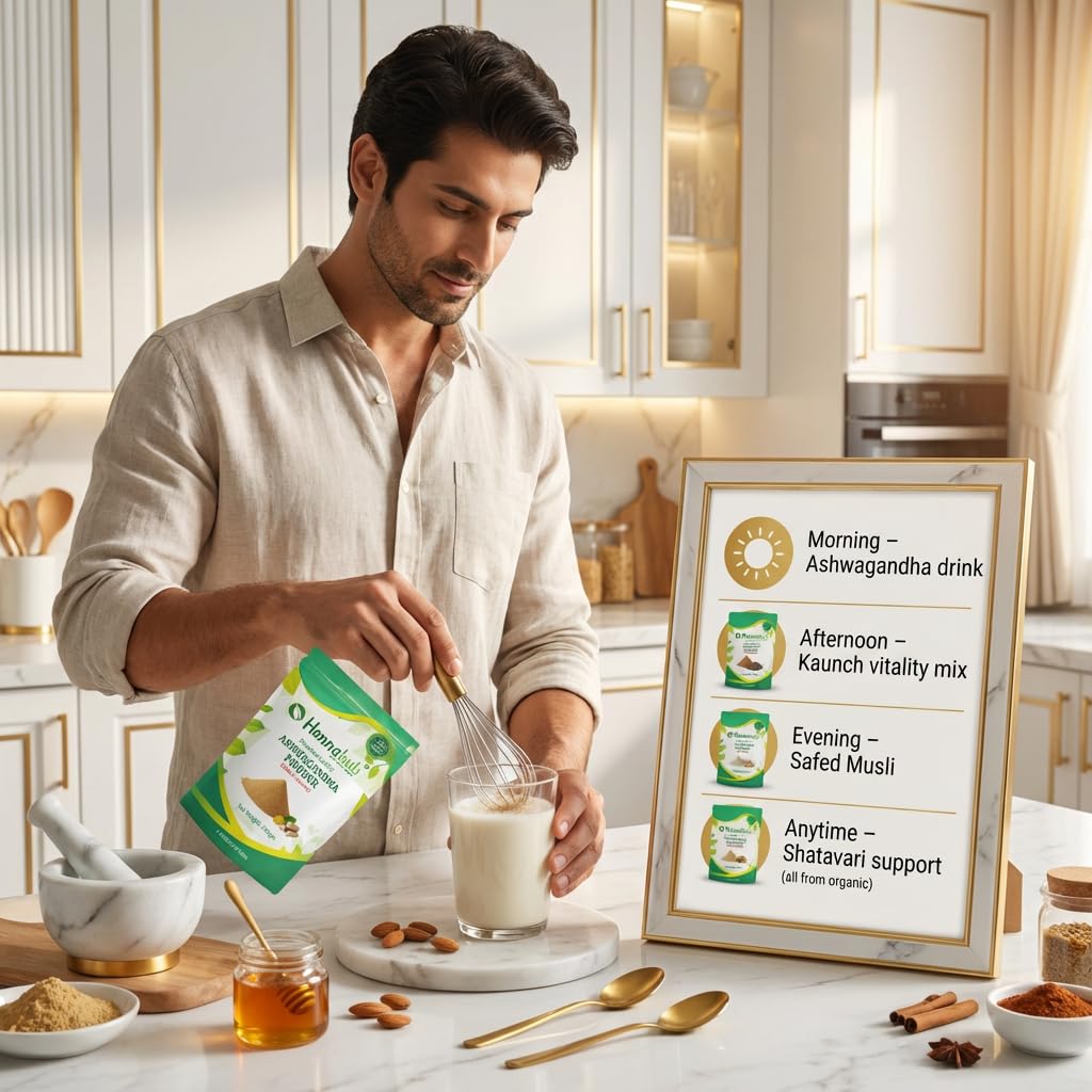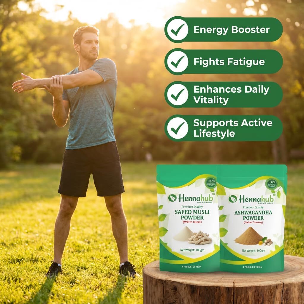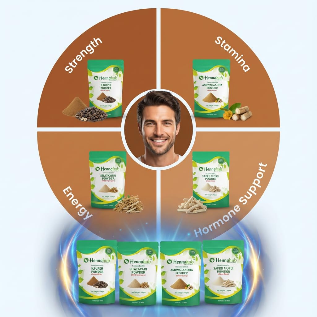 Hennahub Men’s Performance & Vitality Combo | Ashwagandha, Safed Musli, Shatavari & Kaunch Beej Powder | Pack of 4 x 100g | Strength, Stamina, Energy & Wellness Support | 100% Ayurvedic